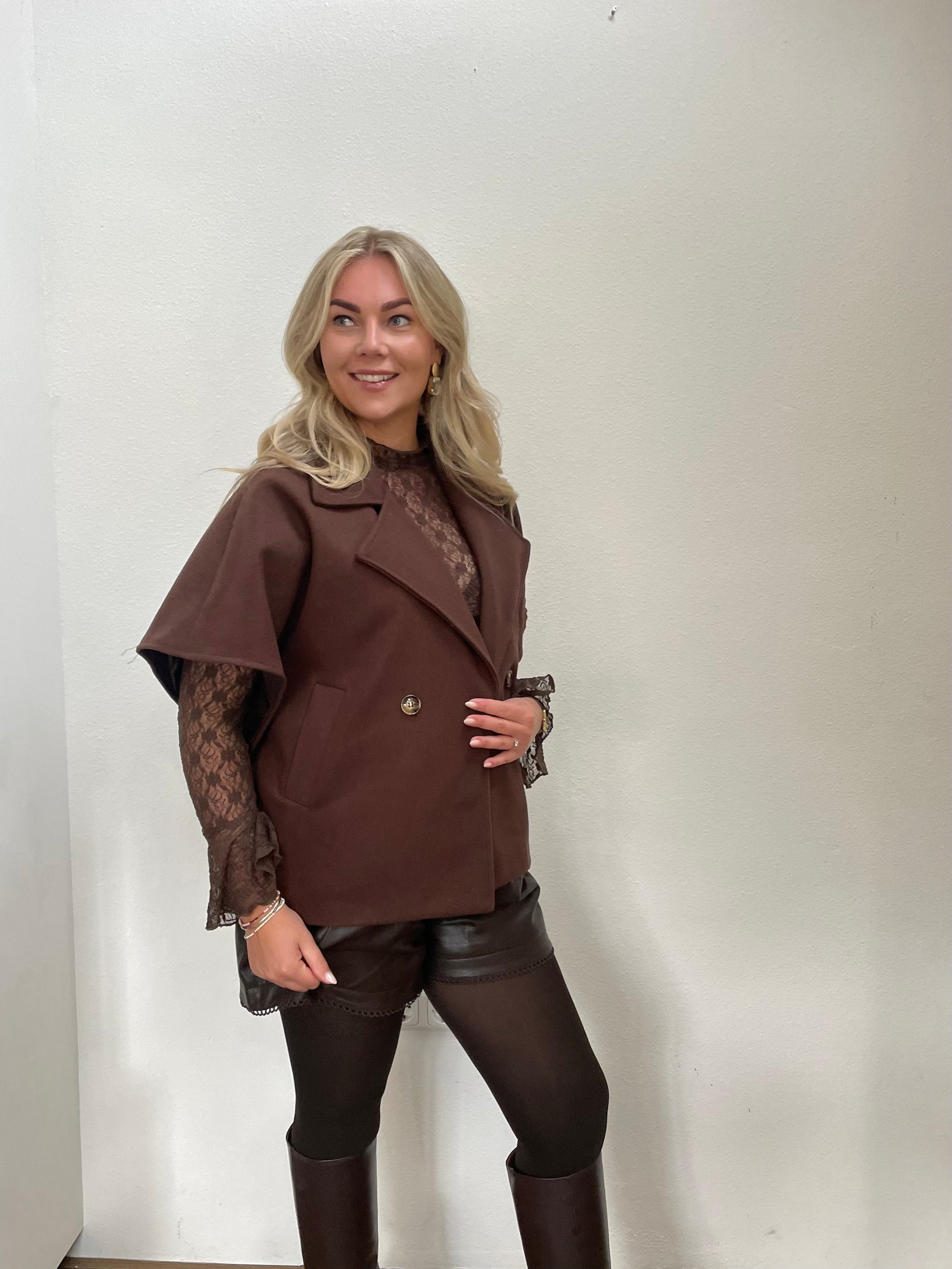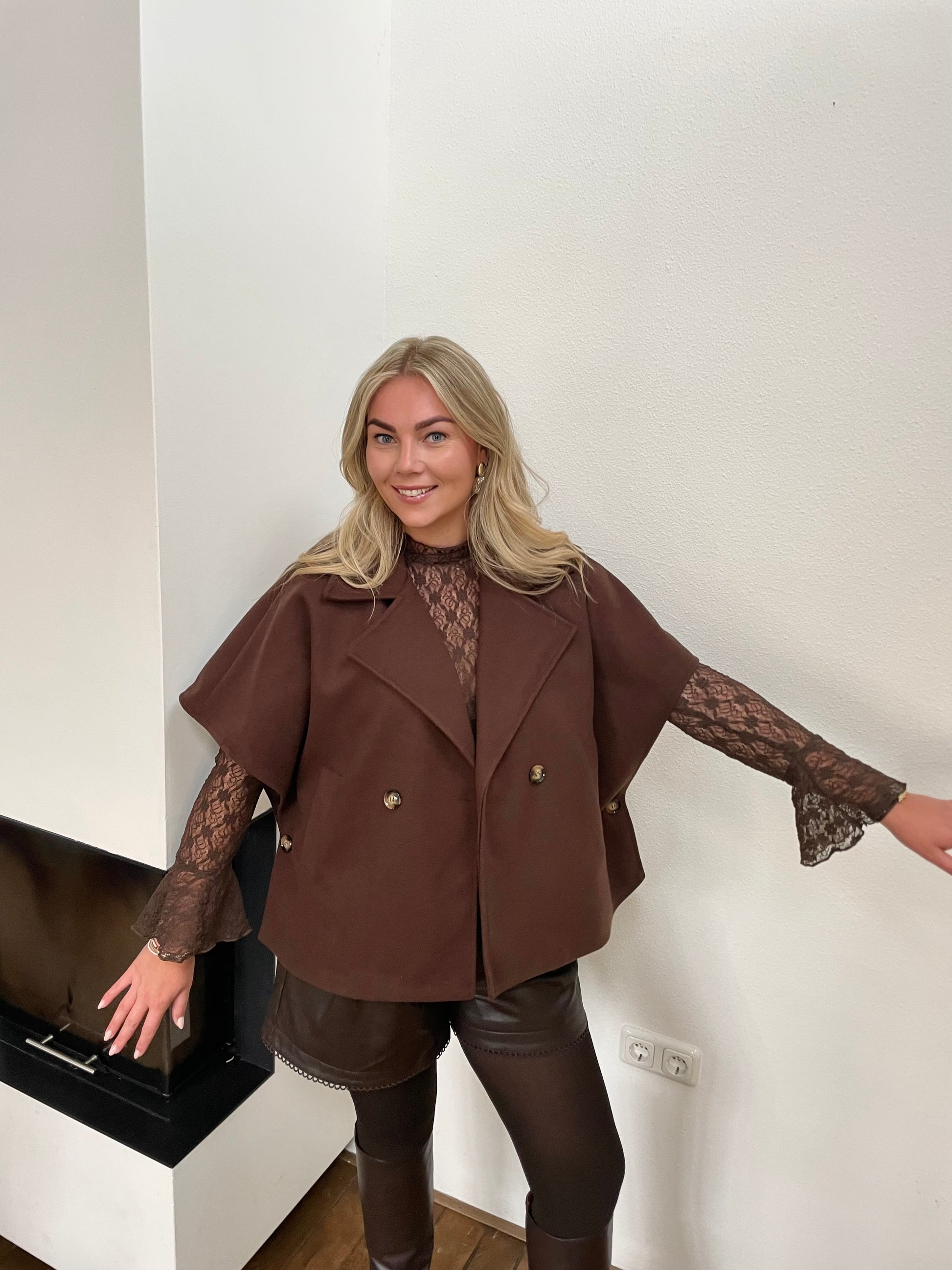 Dit bruine cape jasje is de perfecte mix van stijl en gemak. De elegante cape-look geeft elke outfit een chique upgrade, terwijl de soepele stof en ruime pasvorm zorgen voor ultiem draagcomfort. Ideaal voor het najaar of een frisse lenteavond. Draag ‘m over een blouse, trui of jurk en je bent in één keer goed gekleed.