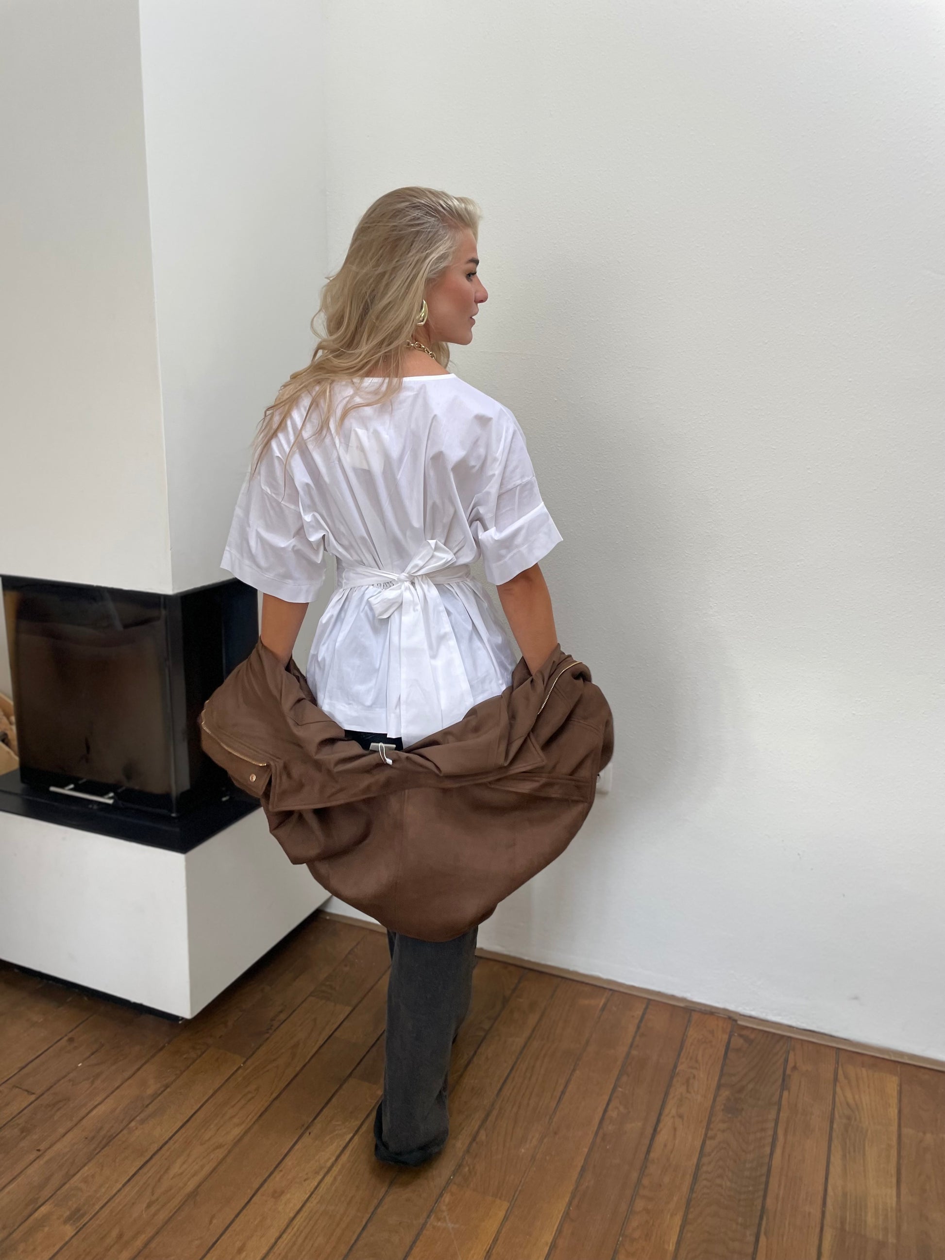 Deze Strik Top is een perfecte mix van stijl en elegantie. De getailleerde pasvorm en de verfijnde strik geven je look een vrouwelijke touch met nét dat beetje extra. Gemaakt van een zachte, soepelvallende stof die comfortabel zit en mooi aansluit. Of je ‘m nu combineert met een jeans voor een casual-chique look of met een rok voor een avondje uit — deze top doet het altijd goed.