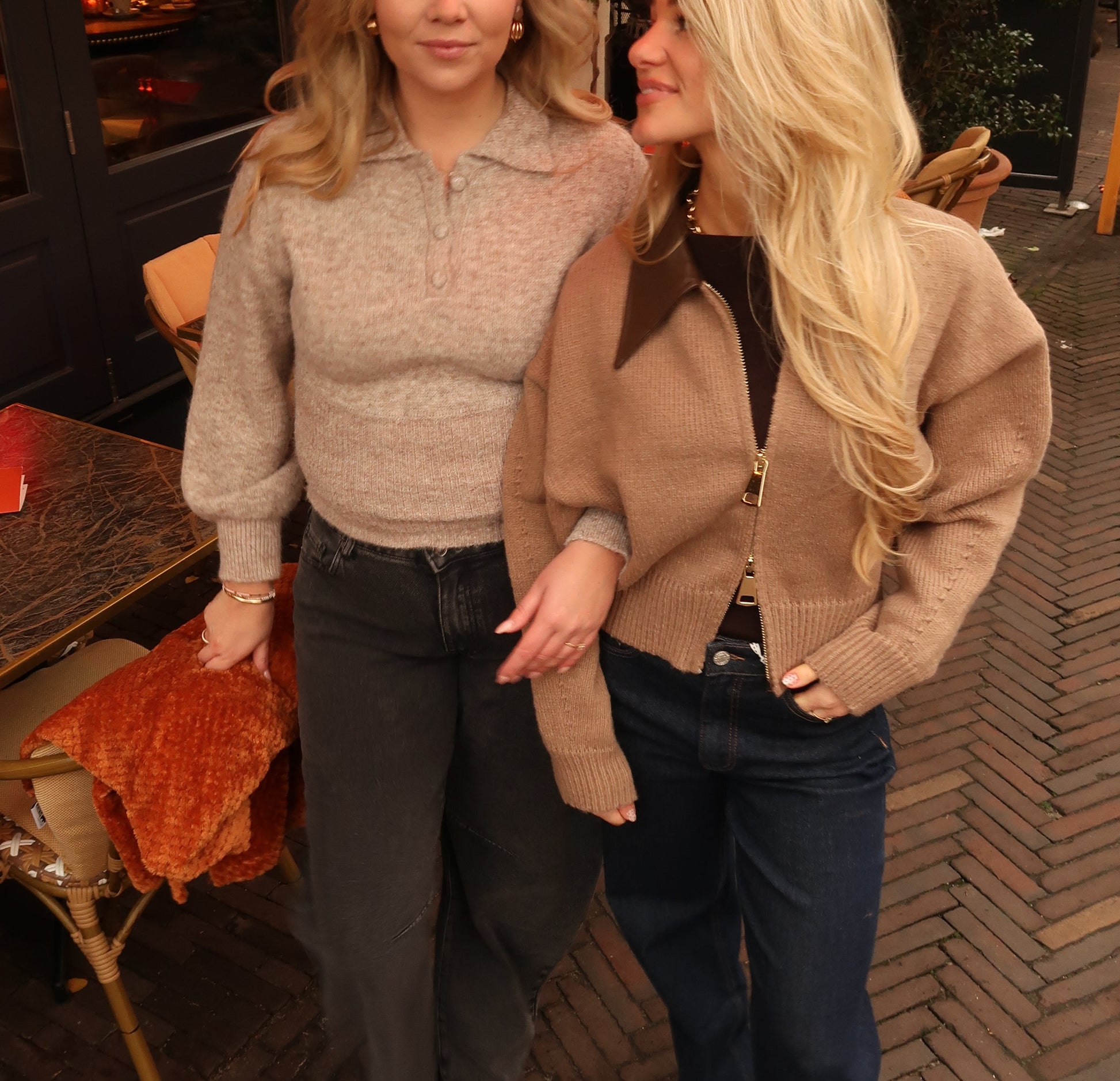 De Beige trui is het perfecte knitwear item voor een cozy maar toch stijlvolle look. Deze zachte beige trui heeft een charmante kraag met elegante knoopjes die zorgen voor een subtiele, speelse touch. Aan de onderkant zit een brede elastische band die de trui mooi in model houdt en zorgt voor een flatterend, comfortabel silhouet. Een heerlijke everyday sweater die zowel casual als classy te stylen is. De trui valt netjes op maat.