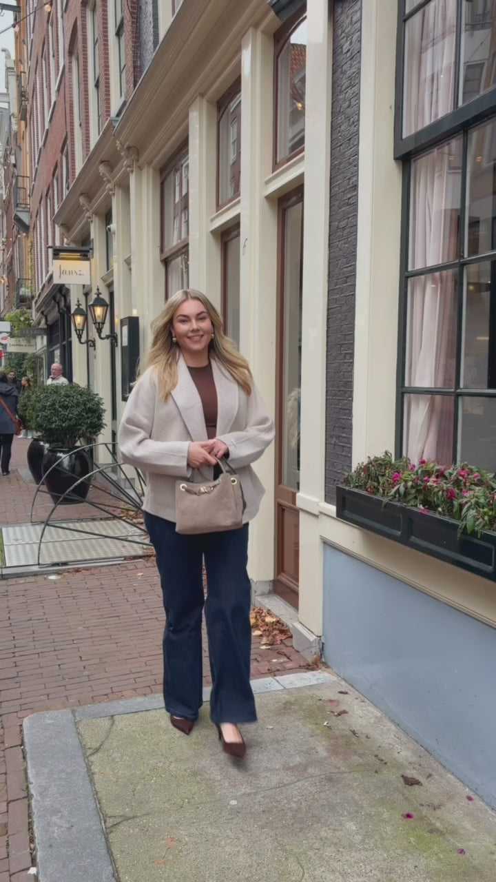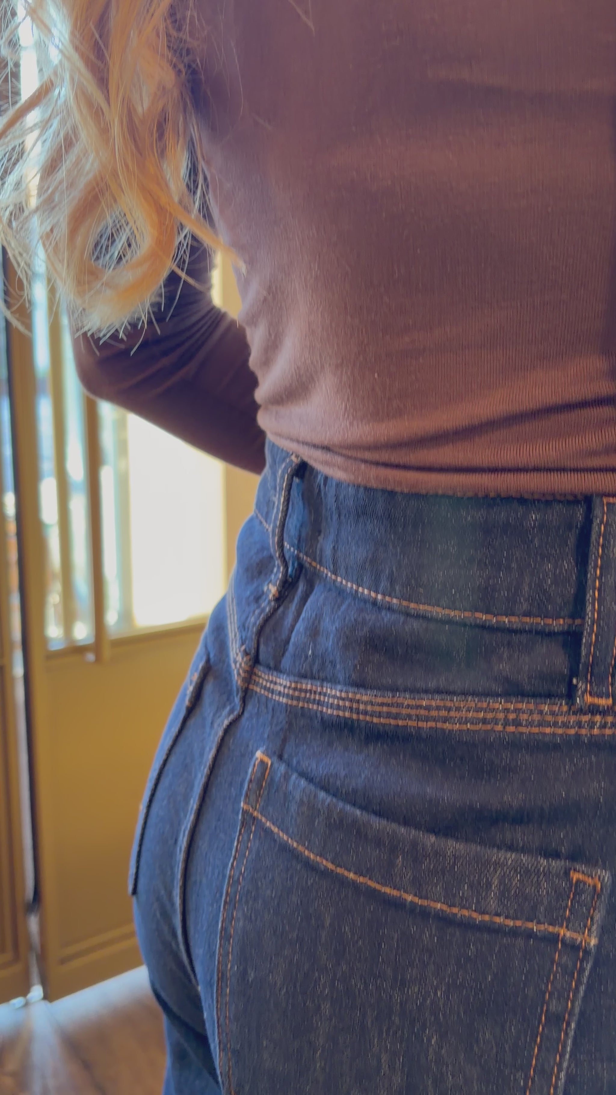 • Wijd uitlopend model met een hoge taille