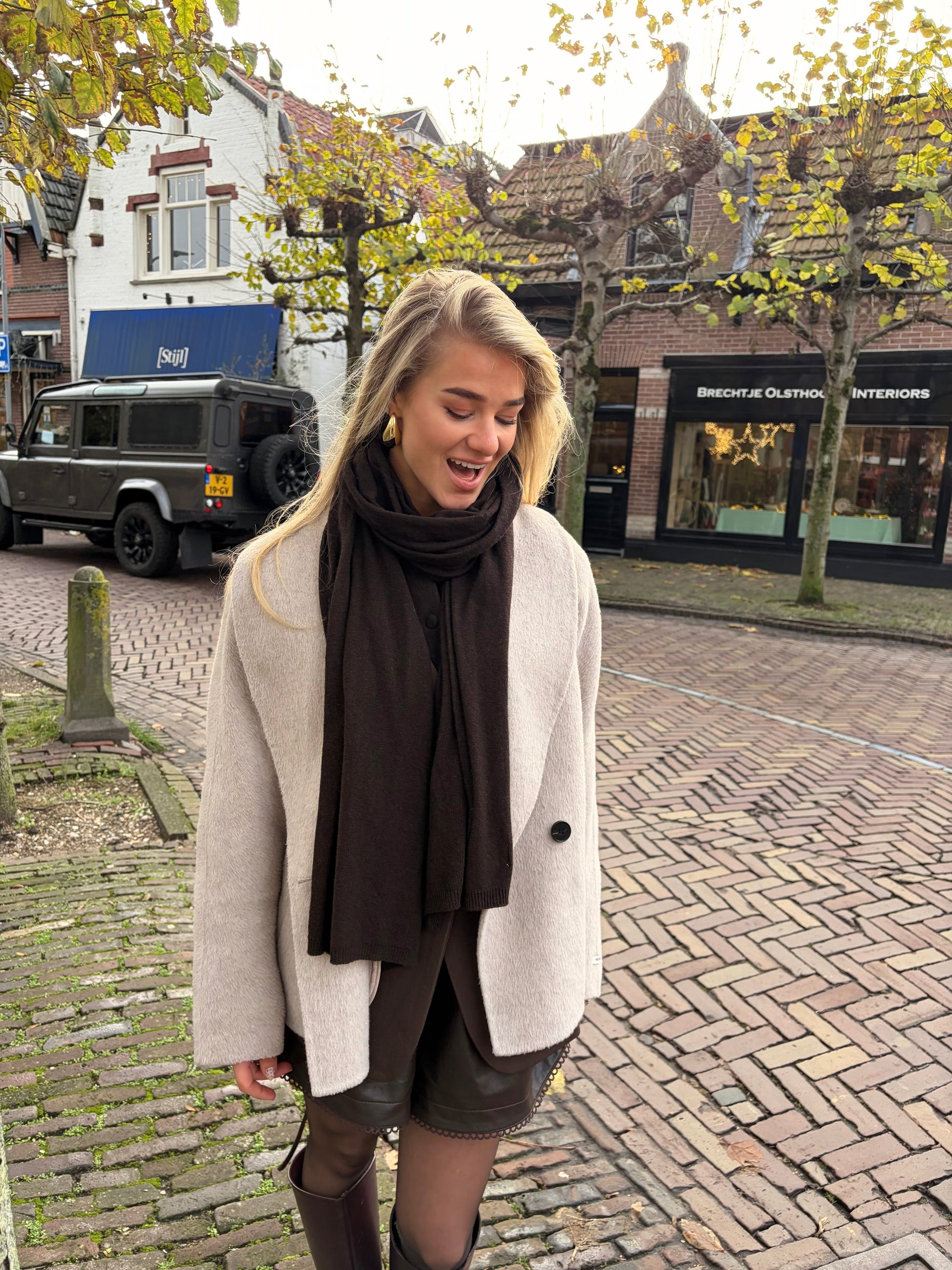 Deze zachte cashmere sjaal is de perfecte accessoire om elke outfit een luxueuze touch te geven. Verkrijgbaar in warme bruin en beigetinten, voegt de sjaal zowel stijl als comfort toe.